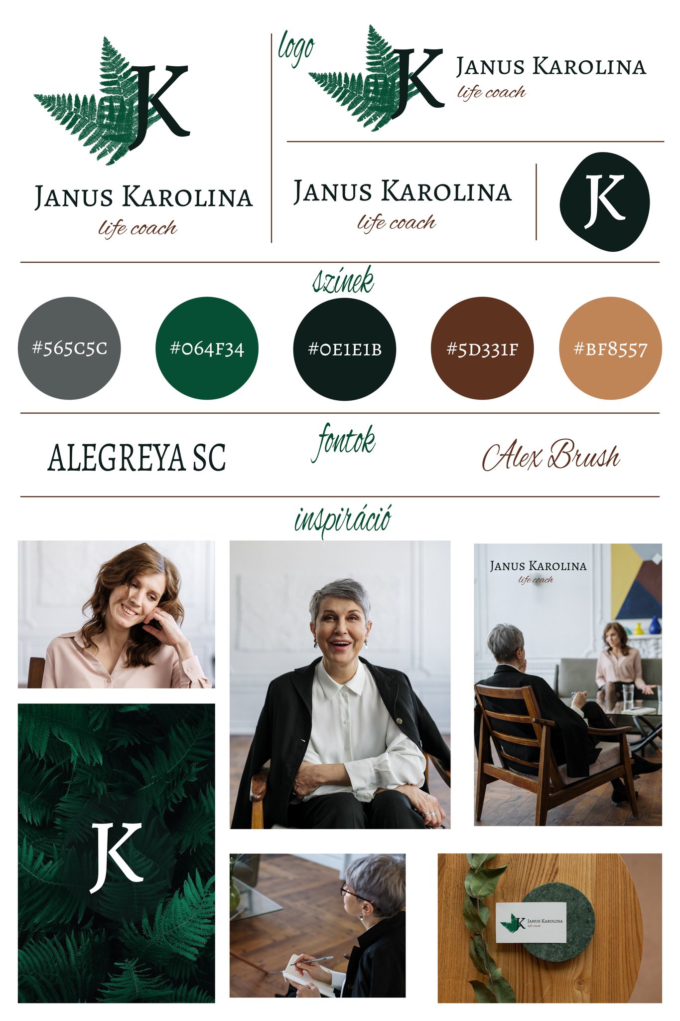 For Janus Karolina’s life coaching brand, I designed a logo centered around the fern, a symbol of honesty, refuge, enthusiasm, and trust—values that perfectly align with her personality and coaching philosophy. The fern is complemented by her initials, creating a visual identity that is both meaningful and memorable.